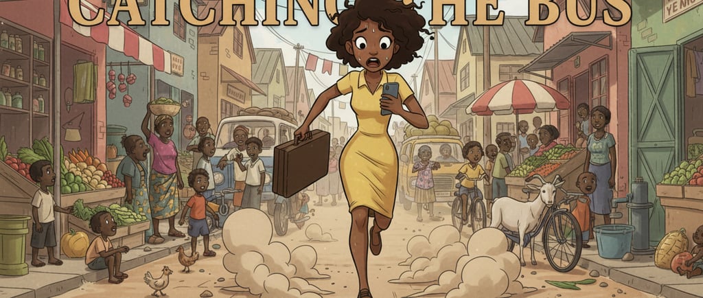 The hem of her skirt was bathed in dust as she hurried along the unpaved roads. Her anxious eyes danced about. The hum of the bustling street encircled her, swallowing her heavy panting. Tapping impatiently, her head swung rapidly from left to right as her ears rang with the sound of cars speeding past. The wind lashed across her face as she made her way across the road. At last, the deafening clitter-clatter of a rusty yellow and green vehicle abated as it came to a stop in front of her. Pushing past struggling shoulders, she burst through the shoving commuters and took her seat on the bus next to the shattered panes. The world around her faded. Throwing her head back, she smiled. She had beaten the traffic.