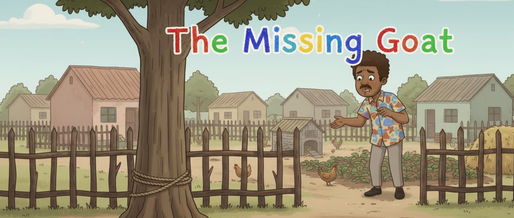 Mr. Obi stood at the gate of the goat pen and counted his goats. One was missing. Scanning the compound and road for strays, he found none. As he puzzled over the whereabouts of the missing goat, he caught sight of it over the fence. The goat was in Mr. Obi's neighbour’s house, munching on the leaves in his farm. Reaching over the fence, he made a desperate attempt to grab its leg, but it leapt away nimbly, letting out a series of bleats. Just then, his neighbour came out of his house and deftly captured it. Mr. Obi, enthused, shouted out his appreciation, but his neighbour made no reply; instead, he marched to the cashew tree in the centre of his compound and tied the goat to its trunk. He, unscrupulous, returned to his house whistling. Staring listlessly, Mr. Obi painfully recalled his neighbour’s solemn promise to seize the goat if it ever set foot in his compound again.